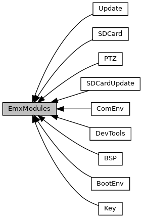 EmxModules包含了大量日常IPC开发中常用的模块,方便加速开发过程,这些模块之间存在一定的依赖关系,下面就这些模块的功能以及依赖关系进行说明: